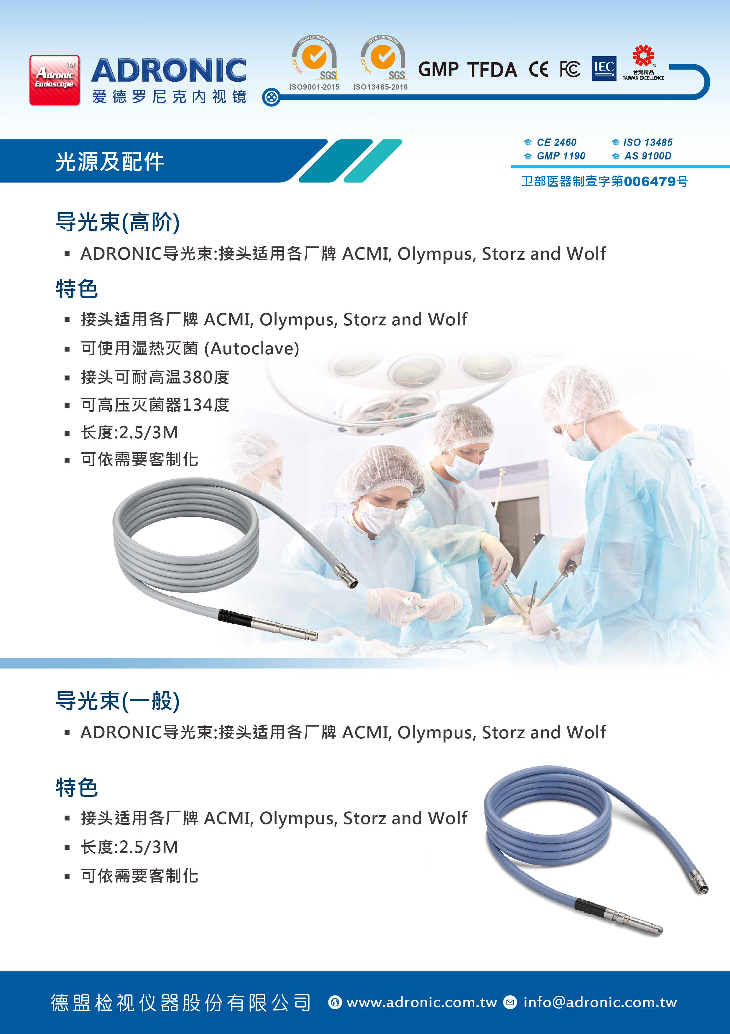 ADRONIC导光束:接头适用各厂牌 ACMI, Olympus, Storz and Wolf
