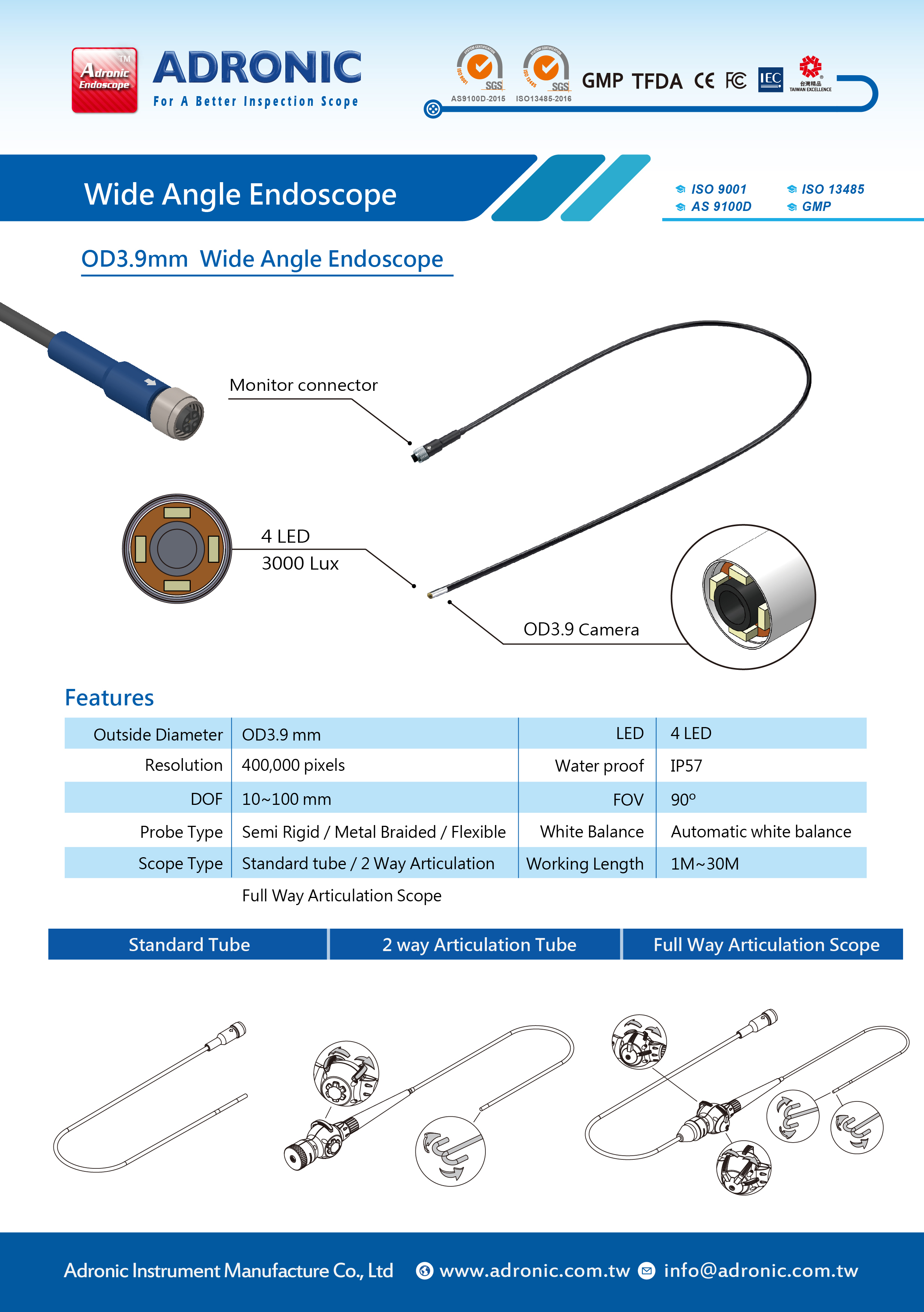 - OD3.9mm High Resolution & Supper Brightness Lumens with wide angle