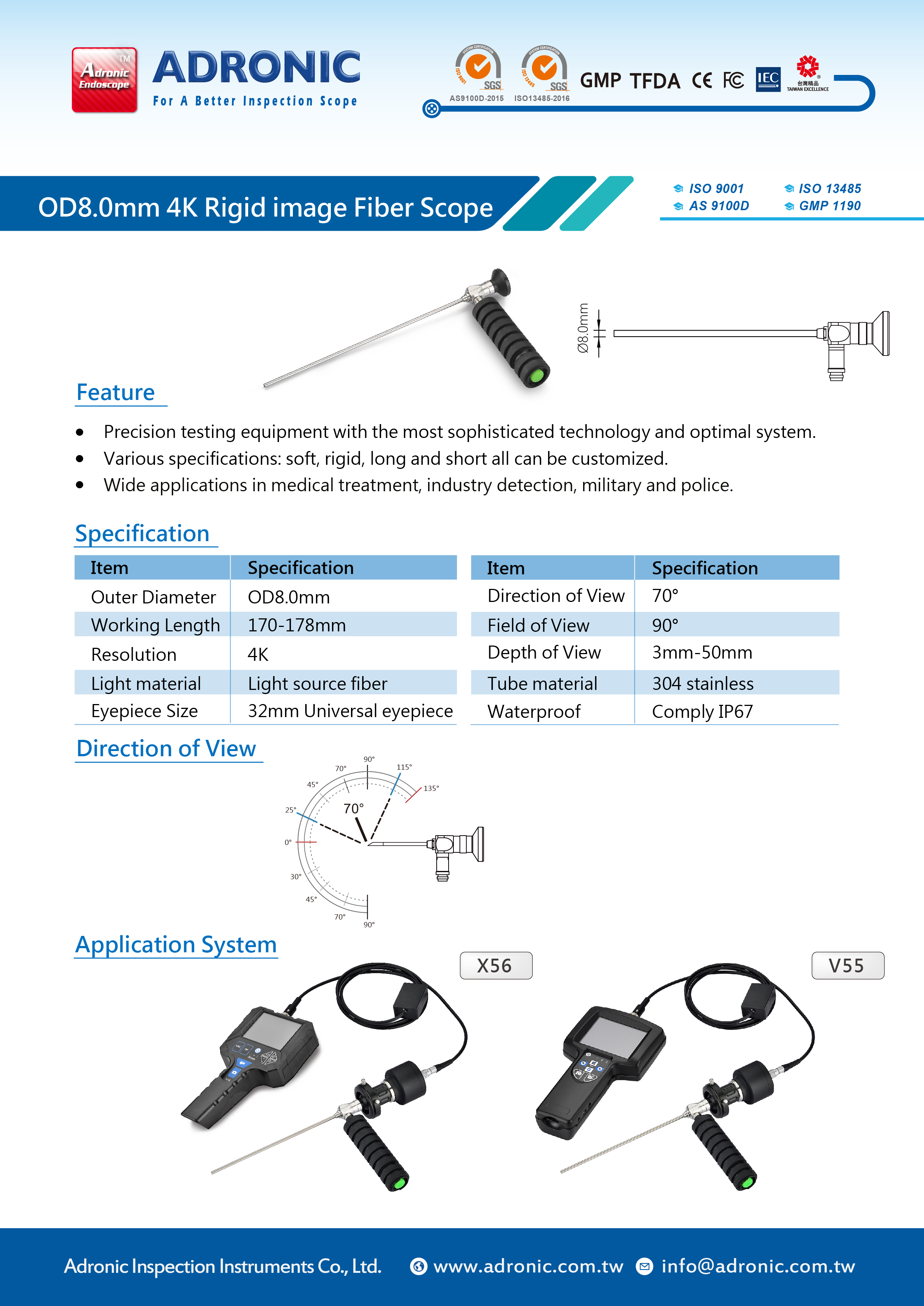 Adronic endoscope provide improves visibility and provides four times more information than conventional Full HD imaging system, closer distance and realizes rich color reproduction. More importation, it can improve visibility and operability with a large screen.