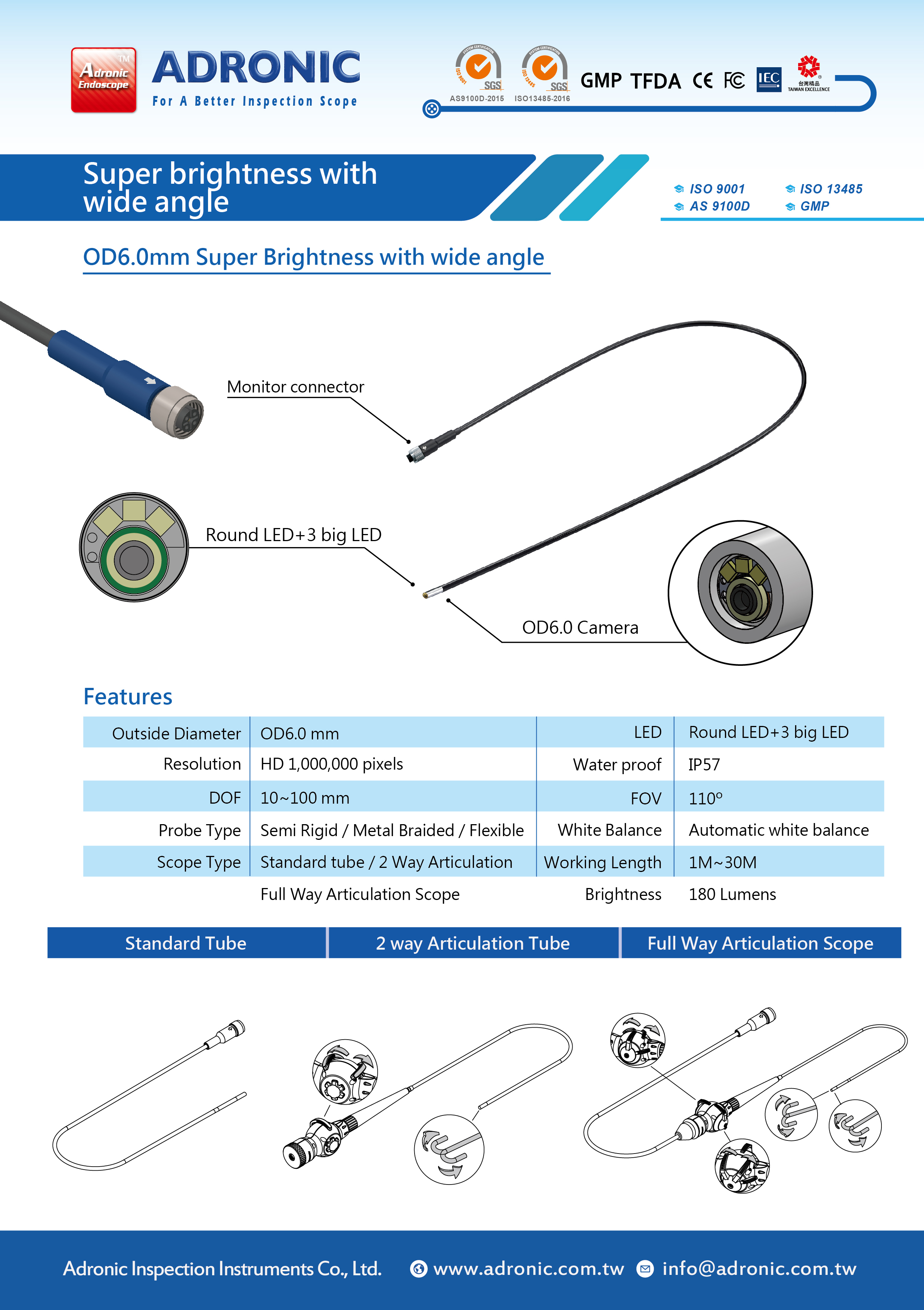 ◎ Scope Type:Standard tube / 2 Way Articulation / Full Way Articulation Scope