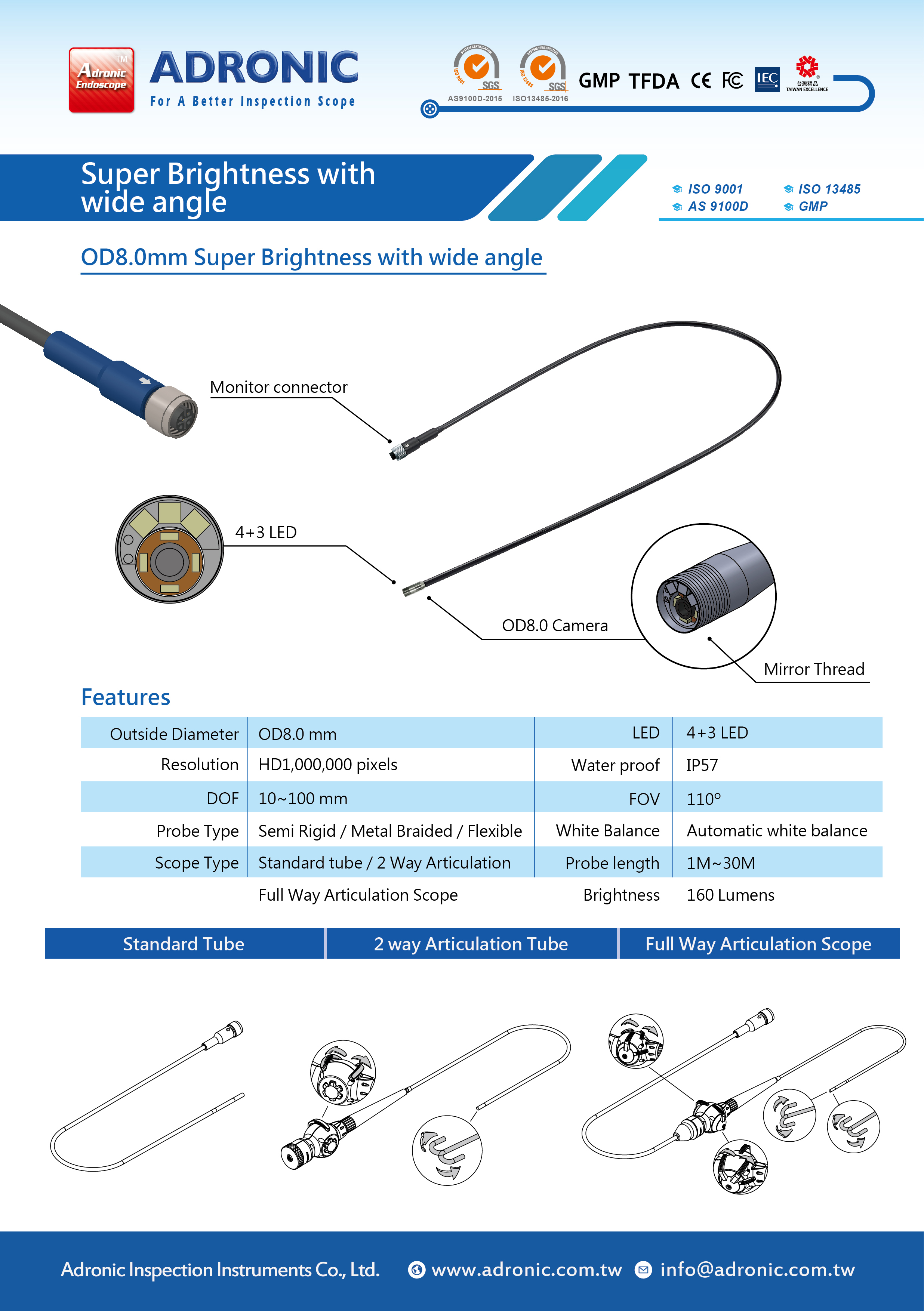 ◎ Scope Type:Standard tube / 2 Way Articulation / Full Way Articulation Scope