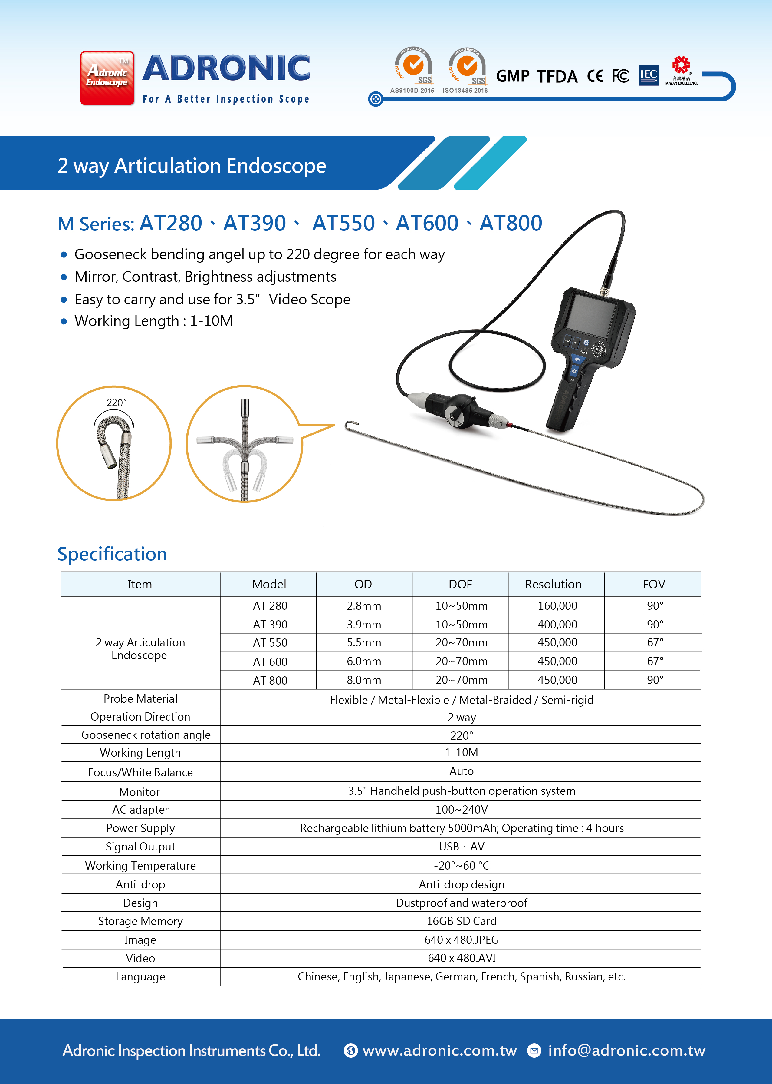 | AT 800 | 8.0mm | 20~70mm | 450,000 | 90° | |