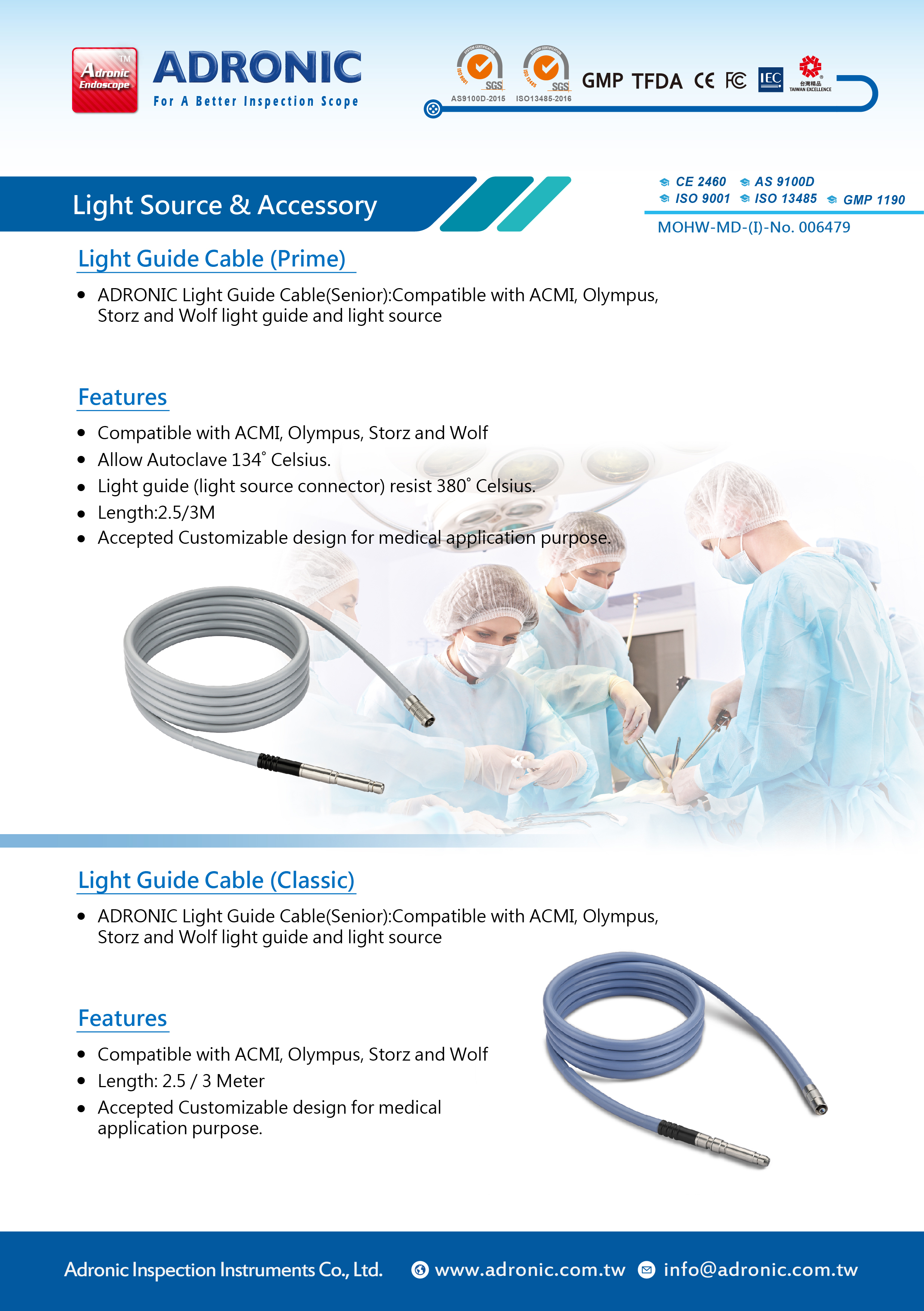 ◎ Compatible with ACMI, Olympus, Storz and Wolf light guide and light source