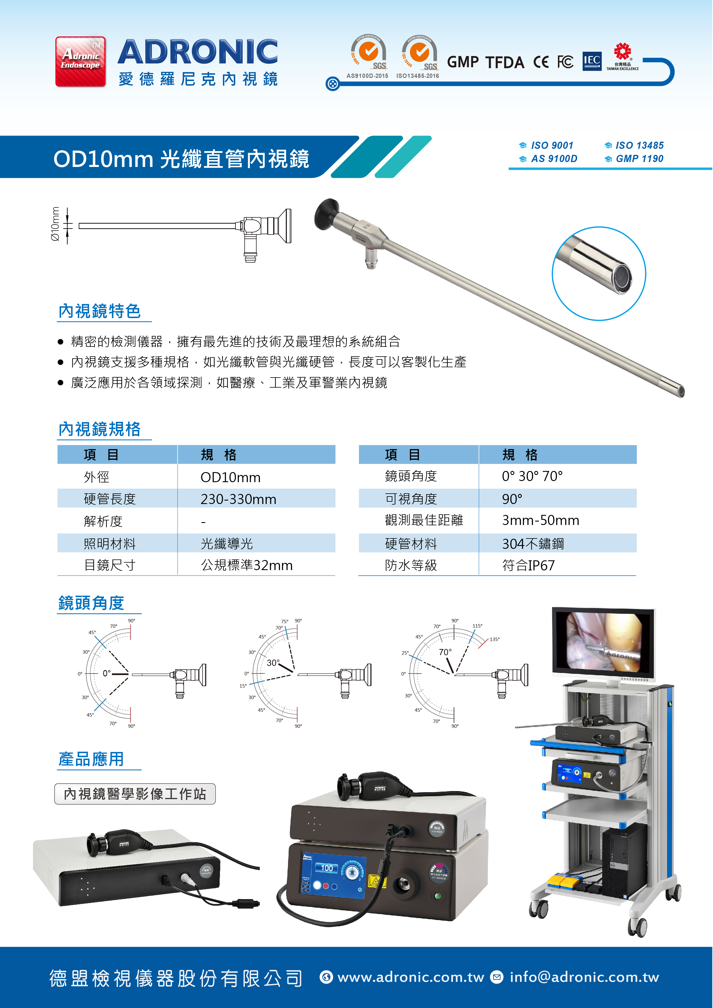 ◎ 廣泛應用於各領域探測,如醫療、工業及軍警業內視鏡支援多種規格,如光纖軟管與光纖硬管,長度可以客製化生產
