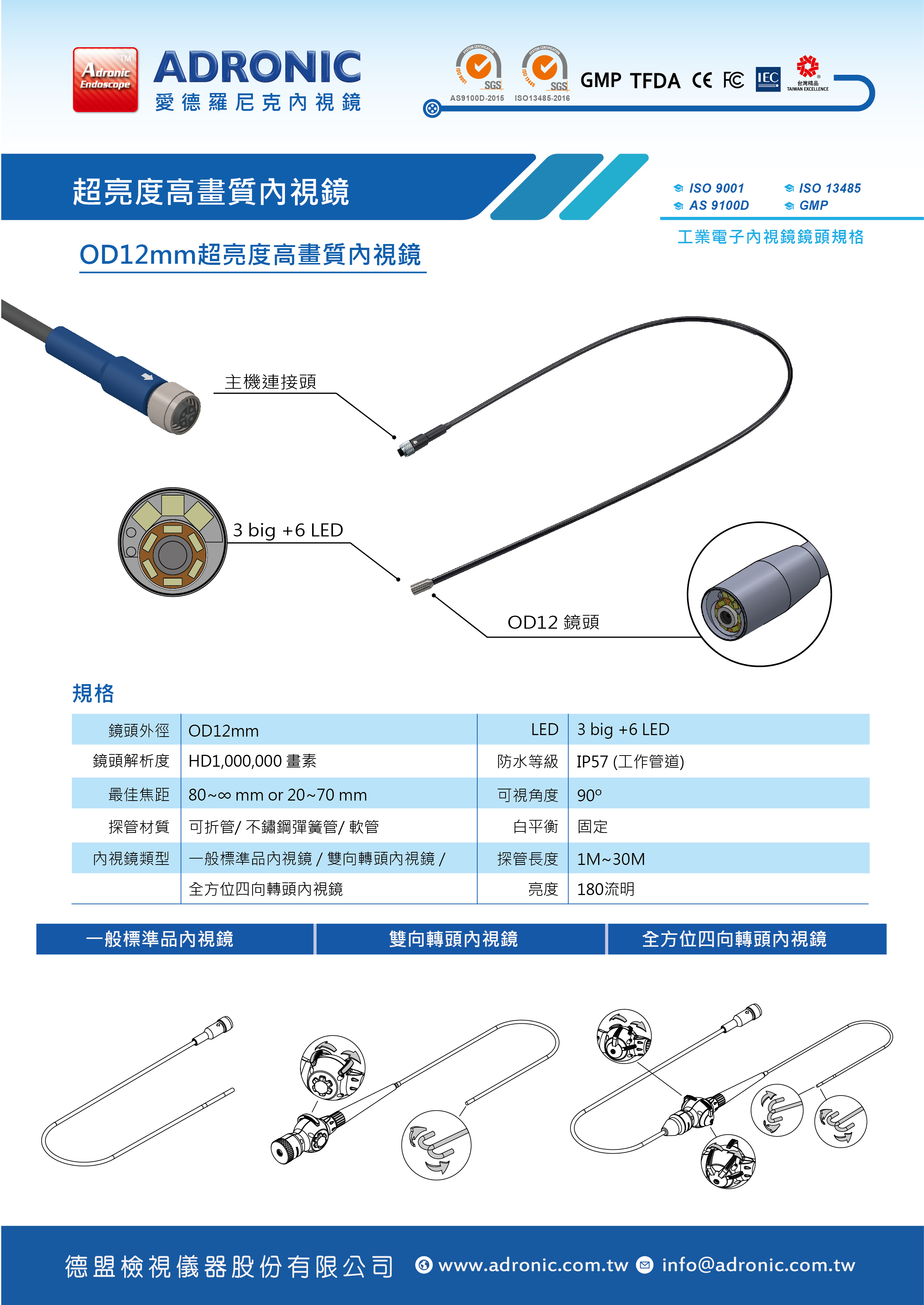 一般標準品內視鏡 雙向轉頭內視鏡 全方位四向轉頭內視鏡 |